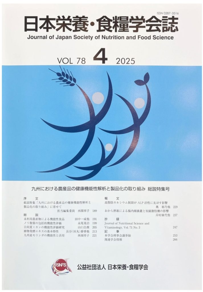 この度、国内では歴史ある日本栄養・食糧学会に論文を掲載いただくことができました。